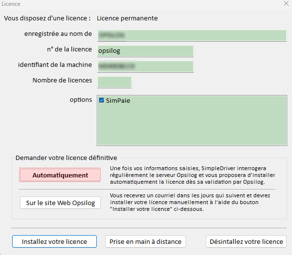 Enregistrement licence SDMobile ou SimpleDriver